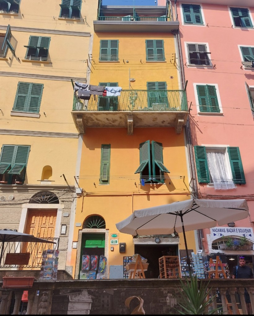 Apartment in Cinque Terre. Washing machine yes, Dryer no. You can my clothes hanging on the clothes line.